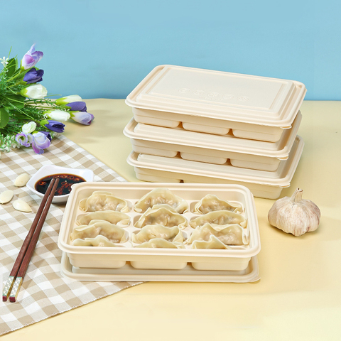 Caja de bola de masa desechable biodegradable de almidón de maíz, contenedor para llevar apto para microondas, fiambrera gruesa al por mayor con tapa