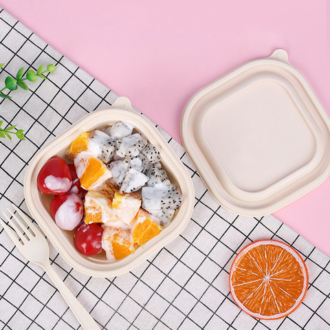 Contenedor de comida de almidón de maíz biodegradable ecológico, fiambrera desechable para llevar con tapa, cuenco cuadrado seguro para microondas y congelador